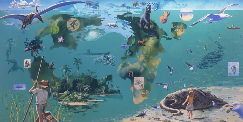Top image: Alexis Rockman, Map of Cryptozoology (1998-99), oil, acrylic on three wood panels, 96 x 192 inches overall. Courtesy of GianEnzo Sperone, New York. Photo: Oren Slor