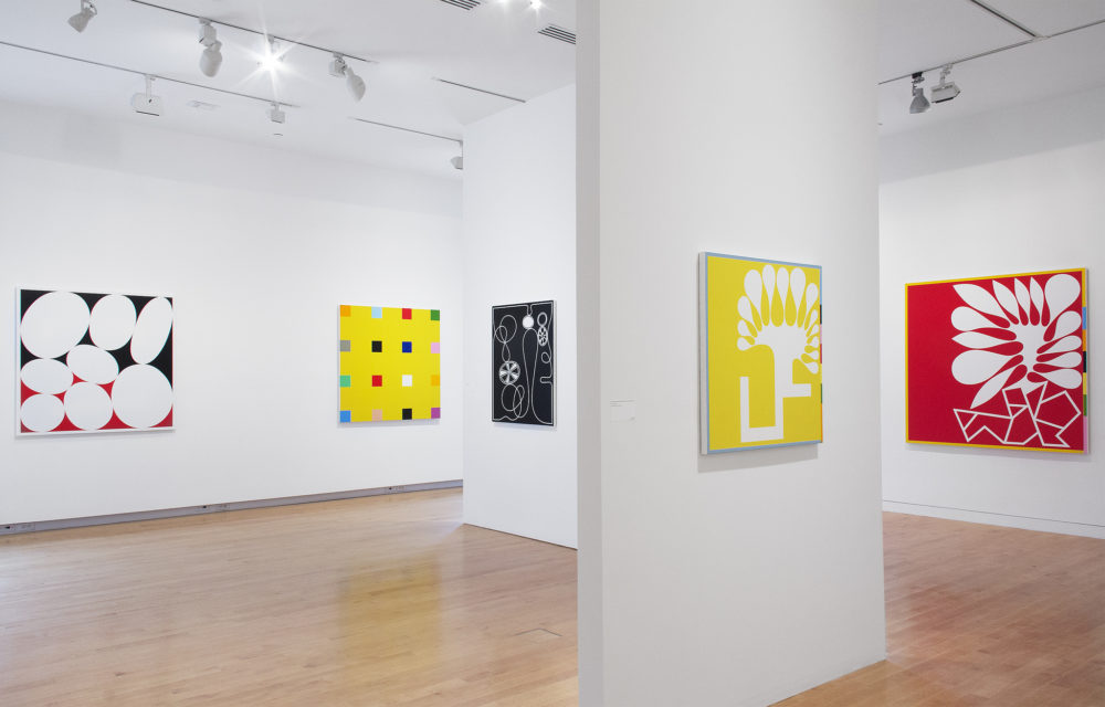 Your Eyes They Turn Me focuses on work completed since 2008, including Smith’s Splats, radiating works that utilize a splash-like motif, and Wonder Wheels, optically active, geometric grids that exhibit a music-like tonality. The exhibition’s title, appropriated from a song by Radiohead, suggests optical attraction, desire, and movement—all things that a viewer encounters in the artist’s work.