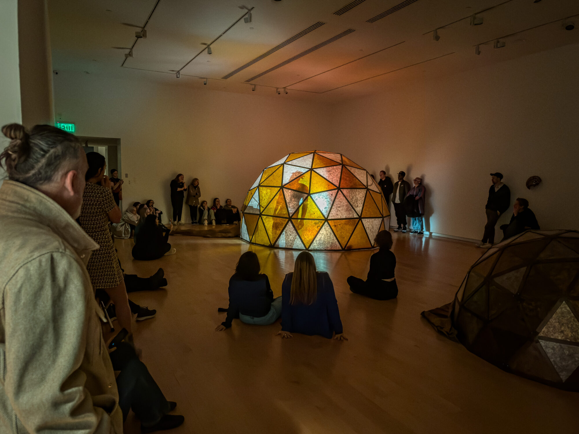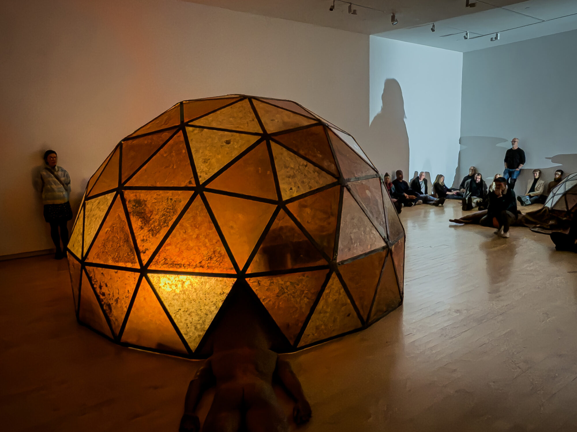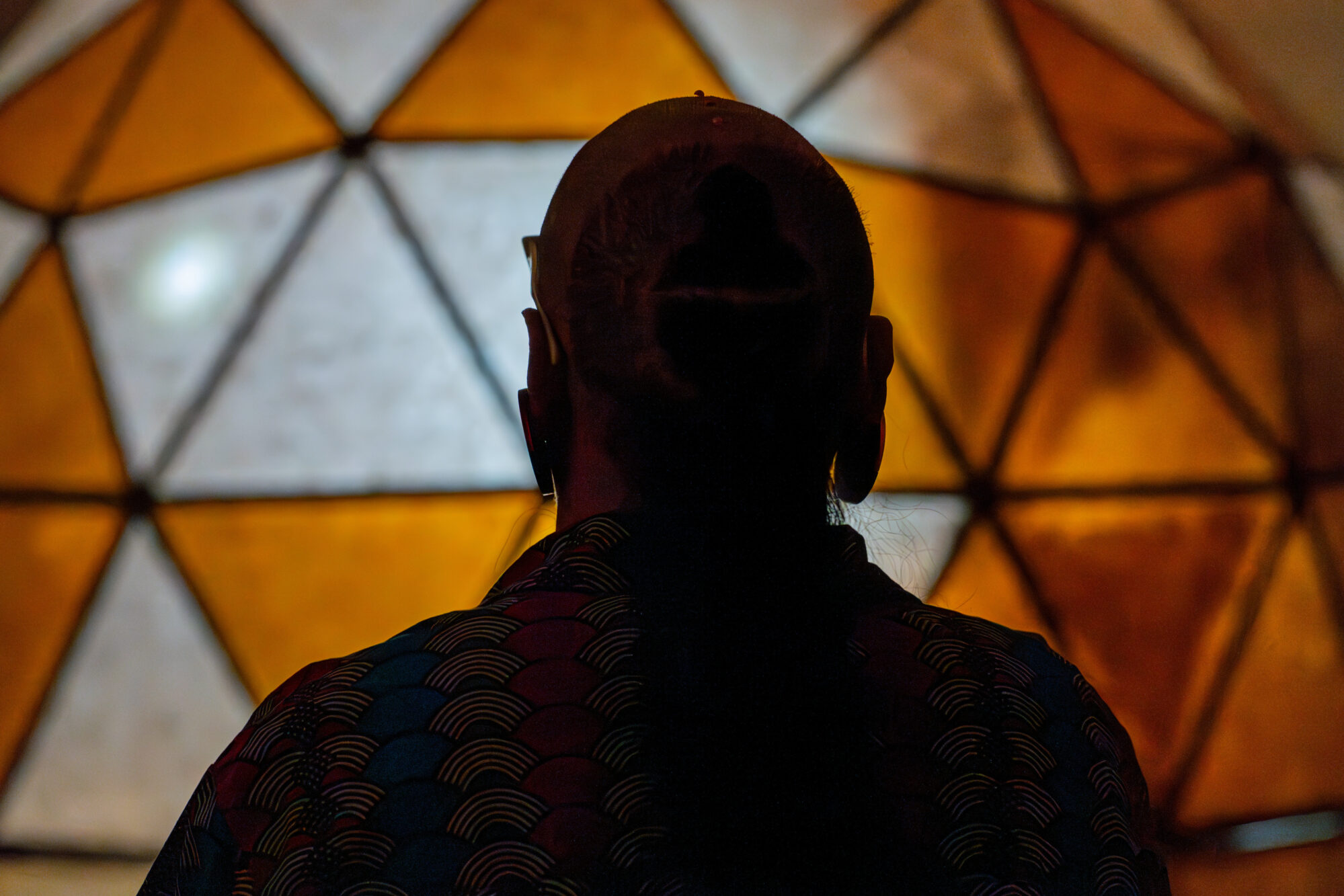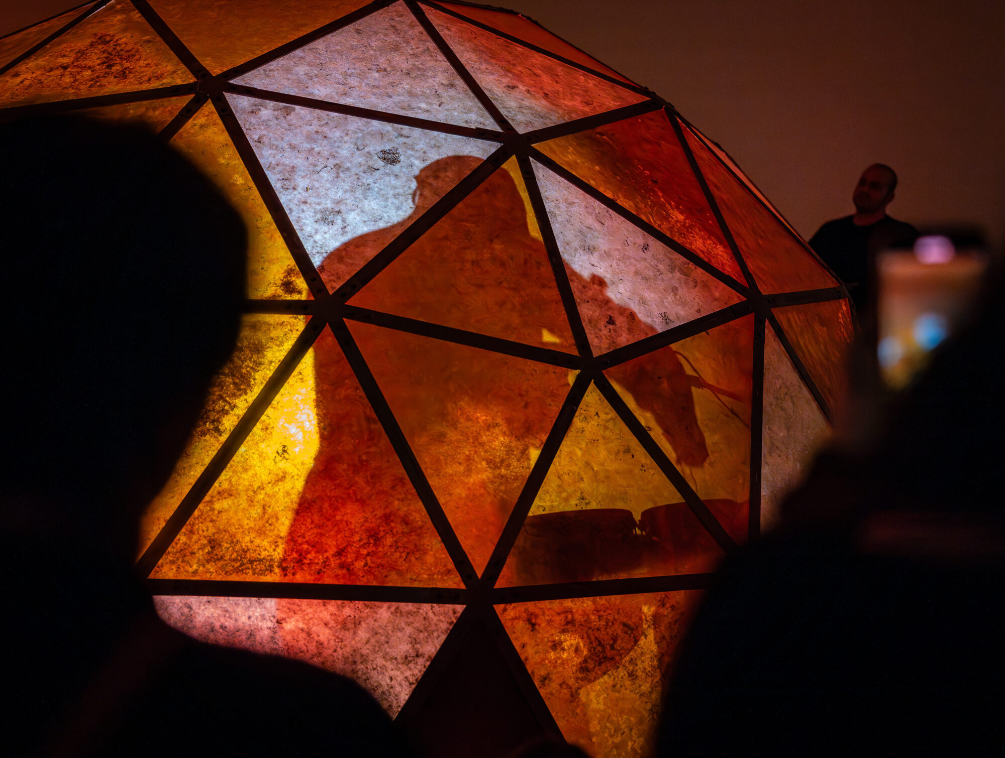 On Saturday, February 3 Chiffon Thomas performed Polish, an hour-long performance in the Museum's South Gallery. The performance took place inside the artist’s exhibition, The Cavernous, where Thomas performed inside his capacious sculpture, Untitled (Dome, Figure 1), which he outfitted with a miniaturized hatch. Turning his sculpture into a vessel or portal to an undetermined landscape, the artist enacted a series of choreographed movements timed to percussive sound and orchestrated lighting to guide healing, passage, and regeneration.