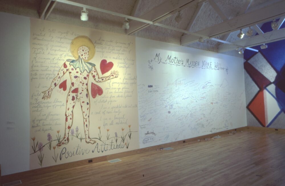 Top image: Karen Finlay, Positive Attitude and My Mother's Maiden Name Wall, 1995.
