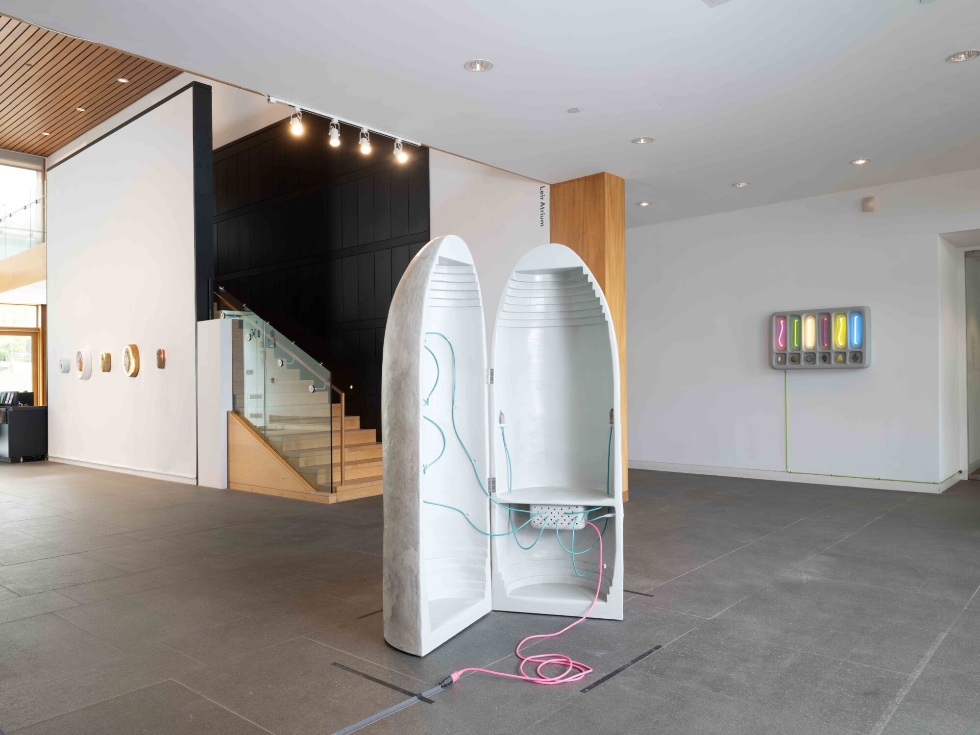 Uncharted is Esther Ruiz’s first solo museum presentation on the East Coast, and the eighth installment of Aldrich Projects, a quarterly series featuring one work or a focused body of work by a single artist on the Museum’s campus. Debuting new sculptures from her Beacon series alongside Codex (2023), these enigmatic objects consider the relationships between the natural and the artificial, the familiar and the alien, and the temporal and transcendental.
