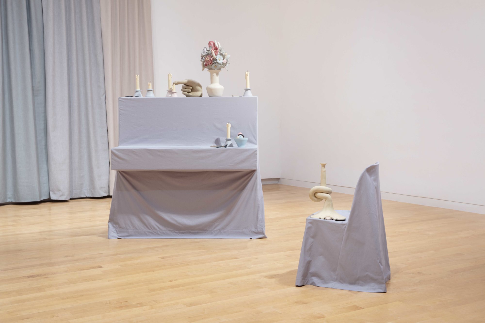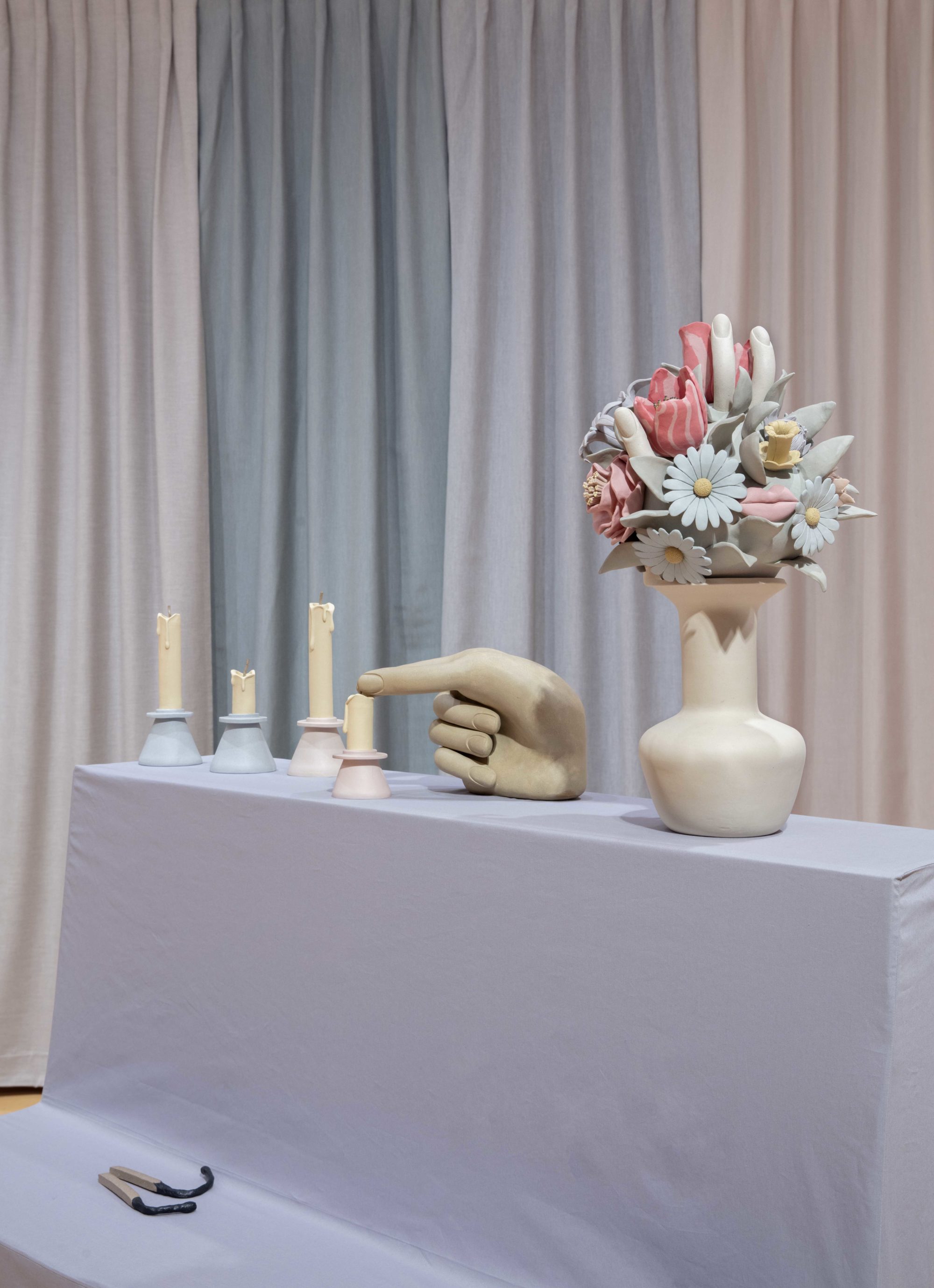 In her first major solo museum exhibition, Through the Eye of a Needle at The Aldrich Contemporary Art Museum, Genesis Belanger expands her iconic, domestic porcelain and stoneware objects that disavow glazes and anthropomorphize desires.