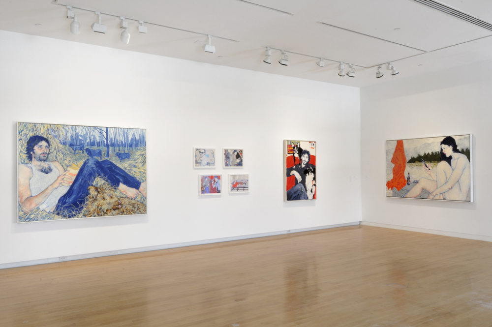 The title Love Letters was suggested by Hope. This is not a surprise, since she constantly states that she loves her friends, her husband, her dog, and nature. I will venture to say that she loves painting just as much and that her canvases bring all those irrepressible love affairs together. In this exhibition dedicated to portraiture, Hope’s work presents her closest friends from life and from intimate photographs taken while on vacation, at dinner, or hanging out at their houses or studios. Some elements of her compositions come from those photographs, but mostly she just gets a feeling from them, because being visually accurate or realistic is not her interest. “It has to look right, but it doesn’t have to be right; it has to feel good,” she explains. With her, it’s all about feeling.
