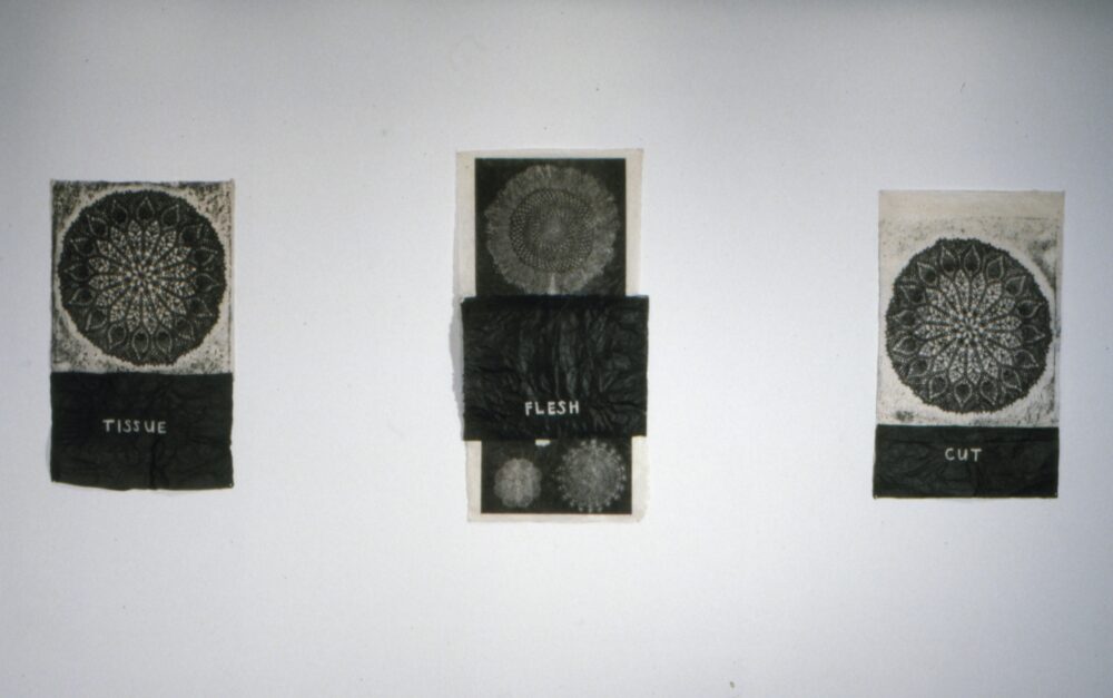 In the Flesh, an exhibit of eleven contemporary artists, takes as its subject the body’s skin as a boundary, a container, a barrier, and a place from which both external and internal perceptions may spring. The body’s vulnerability is evoked in the assembled work; yet a primary attention to the formal and sensual quality of materials marks a turning away from the social construction of self towards its manifestation through the medium itself.