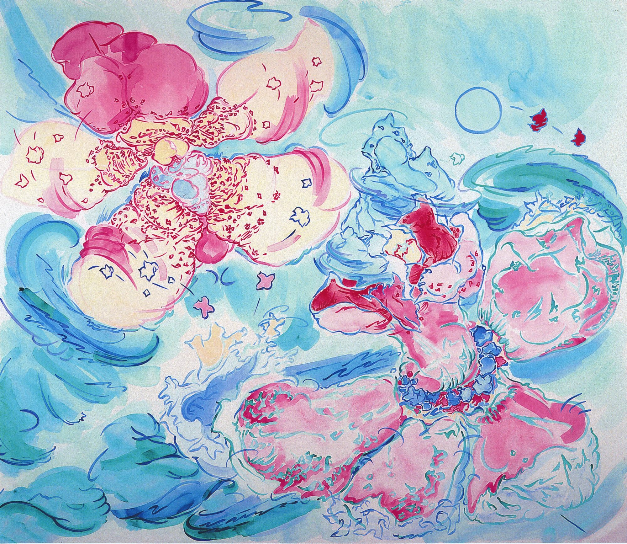 Marks's creation is exuberant, outlandish, and absurd. In Volitia's absurdity there is the essence of what makes this important art. Marks has captured Volitia's determined efforts, her trials and tribulations, her leap from the page to the stage. This character, constituted from simple, cartoonish lines of watercolor, embodies our own human aspirations and endeavors, which seem so large to us on a daily level, but seen from some distance are perhaps equal parts hubris and humor.