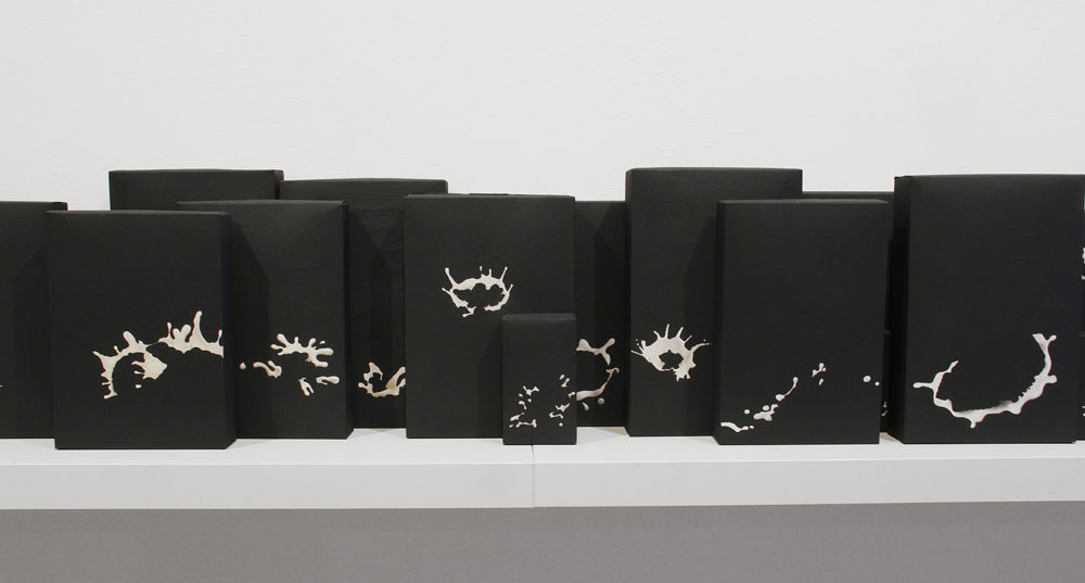 In other works in the exhibition, Umbrico has photocopied images of solar eclipses from the picture collection of the New York Public Library and transformed them both by hand and with cell phone camera apps, expanding and engaging the way that an eclipse inverts the usual roles played by the sun and the moon. In the work Light Leaks (from smartphone camera apps) Umbrico has built a “black box,” a space that references both the camera obscura and the inside of a camera, and used it to house a video installation that is composed of an animated library of fake light leak camera app effects in an attempt to return these digital artifacts to the transcendental quality of natural light.