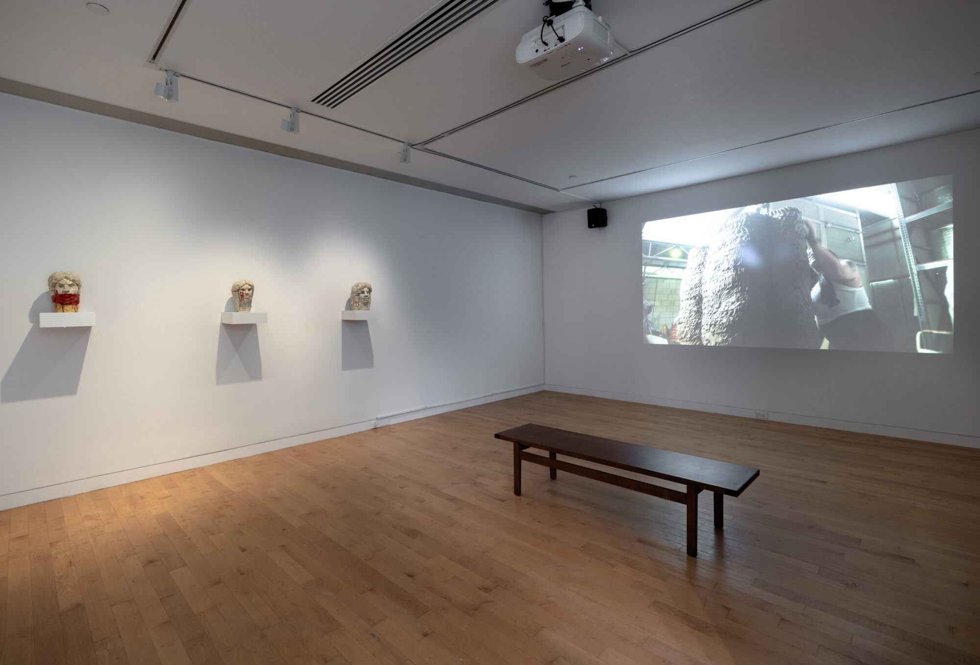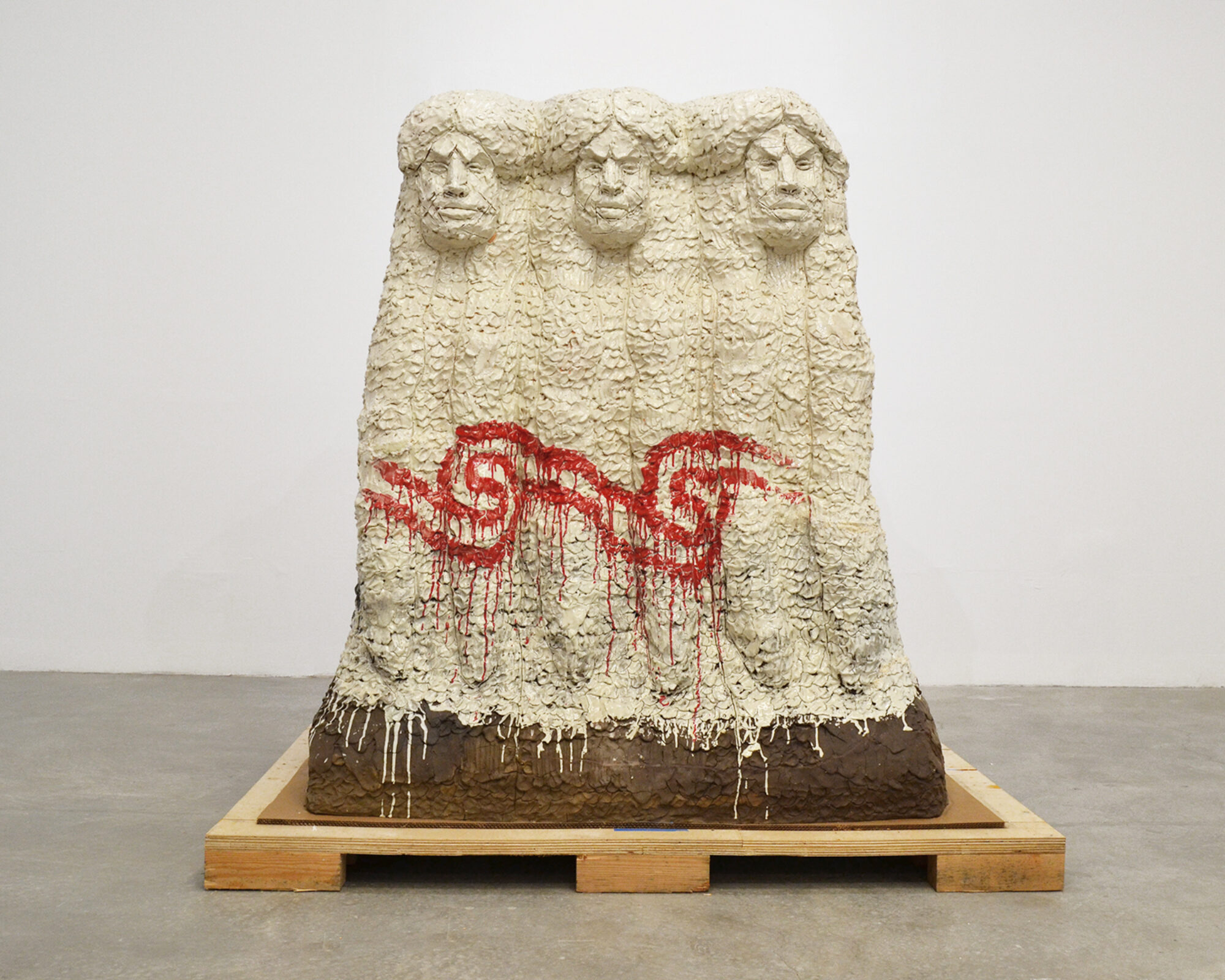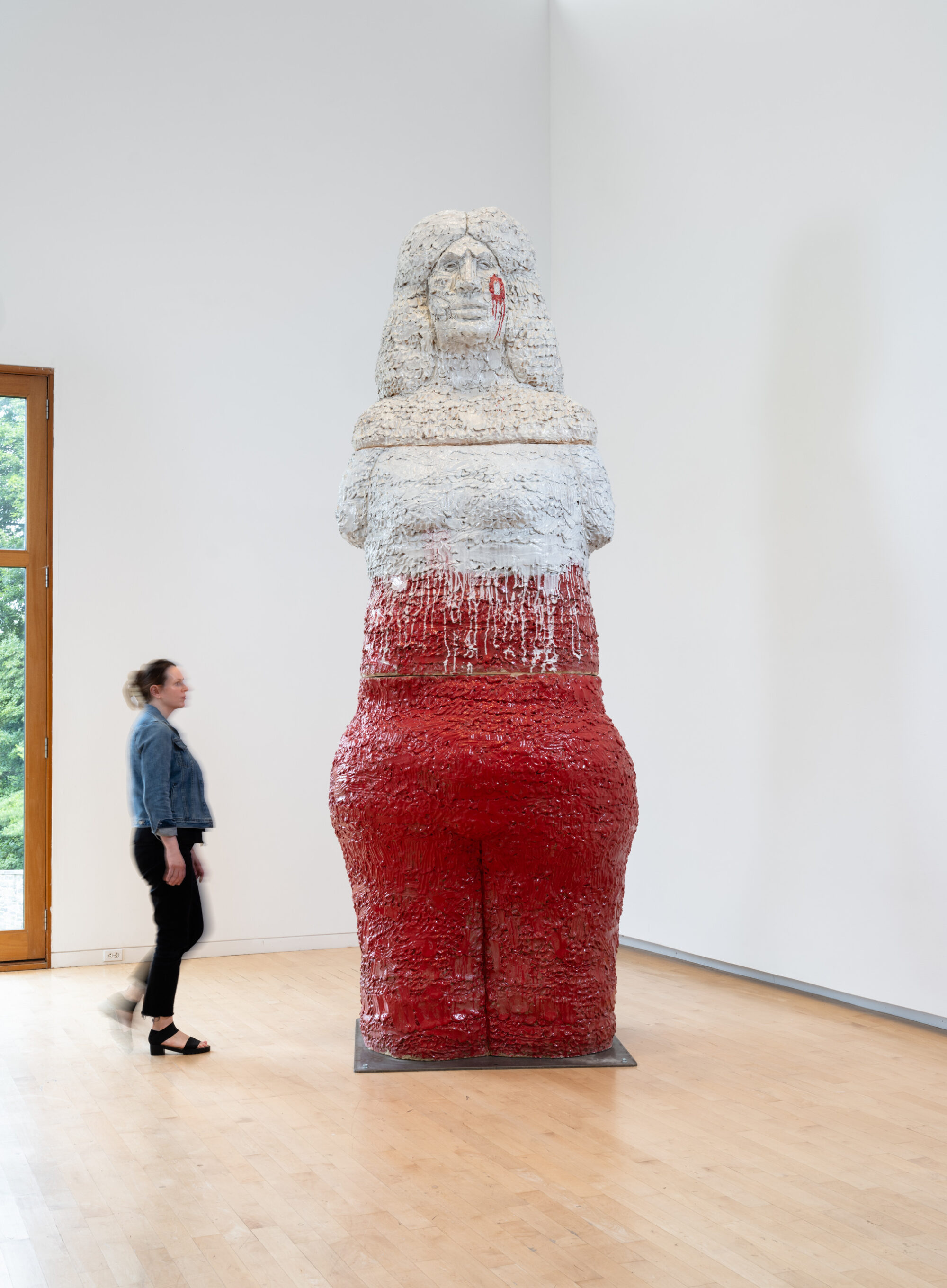 Raven Halfmoon’s practice spans torso-scaled and colossal-sized stoneware sculptures, with some soaring up to twelve feet and weighing over eight hundred pounds. With inspirations that orbit centuries from ancient Indigenous pottery to Moai statues to Land Art, Halfmoon interrogates the intersection of tradition, history, gender, and personal experience. Born and raised in Norman, Oklahoma, she learned about ceramics as a teenager from a Caddo elder. Working mainly in portraiture, Halfmoon hand builds each work using a coil method. Her surfaces are expressive and show deep finger impressions and dramatic dripping glazes—a physicality that presences her as both maker and matter. She fuses Caddo pottery traditions (a history of making mostly done by women) with populist gestures—often tagging her work (a reference to Caddo tattooing). Her palette is specific and matches both the clay bodies she selects and the glazes she fires with—reds (after the Oklahoma soil and the blood of murdered Indigenous women), blacks (referencing the natural clay native to the Red River), and creams. Sometimes she stacks and repeats imagery, creating totemic forms that represent herself and her maternal ancestry while also reinforcing the multiplicities that exist inside all of us. Her works reference stories of the Caddo Nation, specifically her feminist lineage and the power of its complexities. This exhibition will include a combination of new and borrowed works that vary in size and content from over the last five years. Halfmoon will also be creating some of her largest works to date commissioned by The Aldrich and Bemis Center. The artist’s first museum catalogue will accompany the exhibition.