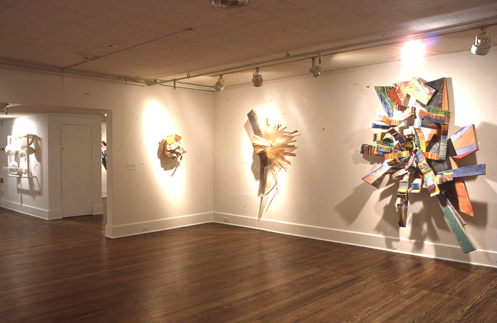 The wall sculpture in this exhibition affirms the objecthood of sculpture. What we see are rich, evocative surfaces and textures, metaphors that are more organic, and scale that is more intimate. These are in direct contrast to the prevailing large-scale, and environmental sculptural concerns. For all their diversities in materials, methods, and sources, the artists presented here spring from the midst of the “new object” generation.