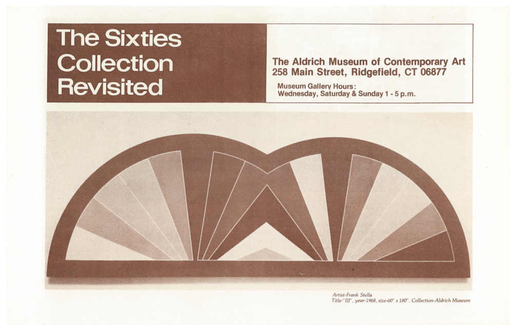 The sixties was a period of great ferment in the visual arts. Several major movements emerged. Pop Art, Op Art, Minimal Art, Kinetic Art, and Lyrical Abstraction. The Sixties Collection Revisited has major examples of these important movements. The current exhibition, consisting of 64 works, was selected from 125 works available to the museum from this period.