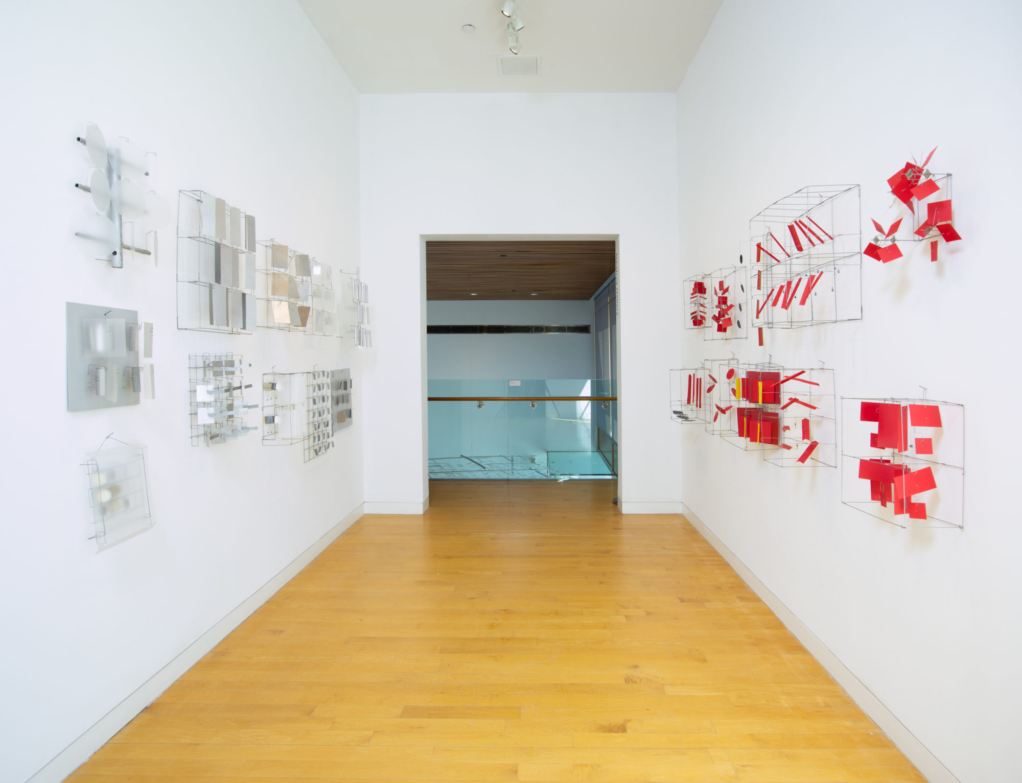The title of the exhibition refers to Alexander Calder, a former Connecticut resident who in the 1930s adopted the term mobile at the urging of Marcel Duchamp to describe his balanced, moving wind-driven constructions. Calder’s playful Mobiles, and later George Rickey’s delicately balanced minimalist, kinetic sculpture, each defined their time. Prentice’s contribution to the field strongly relates to the rise in the past half century of systems theory, the understanding that cohesive systems are interrelated and independent parts are resilient to external disruption, having the ability to move but always returning to their original form. Prentice’s seemingly complex but simple systems of bent, articulated wire and metal or plastic planes are incredibly sensitive to moving air and seem to be extremely fragile, but are actually quite robust, giving in to the wind’s force, but always recovering with their motion revealing the rippling and fluid patterns of moving air.
