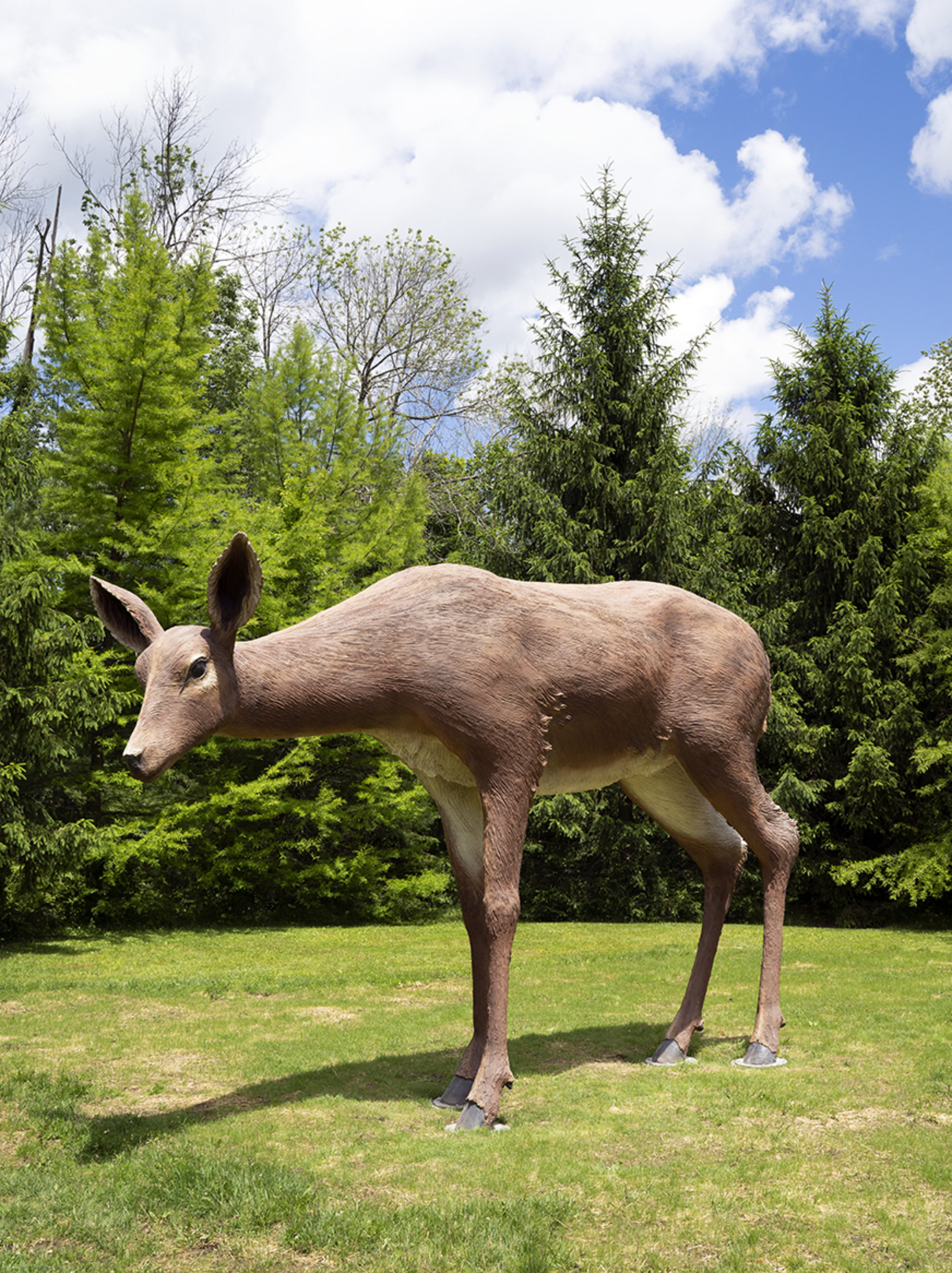 “Most artists try to be original, I try to be familiar,” stated Tony Tasset (b. 1960). Tasset has focused many of his recent endeavors on public art with subject matter based primarily in American vernacular visual culture. For his sculpture Deer (2015), Tasset has taken the common white-tailed deer and blown it into what can only be considered monstrous proportions. Hunted to near extinction in much of the United States, the white-tailed deer has made a spectacular comeback, much to the annoyance of both farmers and suburban gardeners. Deer will occupy a site in the Museum’s Sculpture Garden.