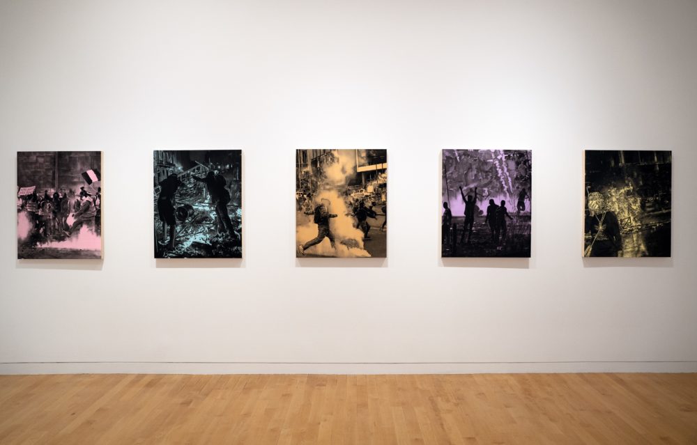 Top image: Andy Mister, Paris; Barcelona; La Paz; Gaza; Beirut (installation view), all 2020, Courtesy of the artist and TURN Gallery, New York, Twenty Twenty, The Aldrich Contemporary Art Museum, October 12, 2020 to March 14, 2021, Photo: Christopher E. Manning