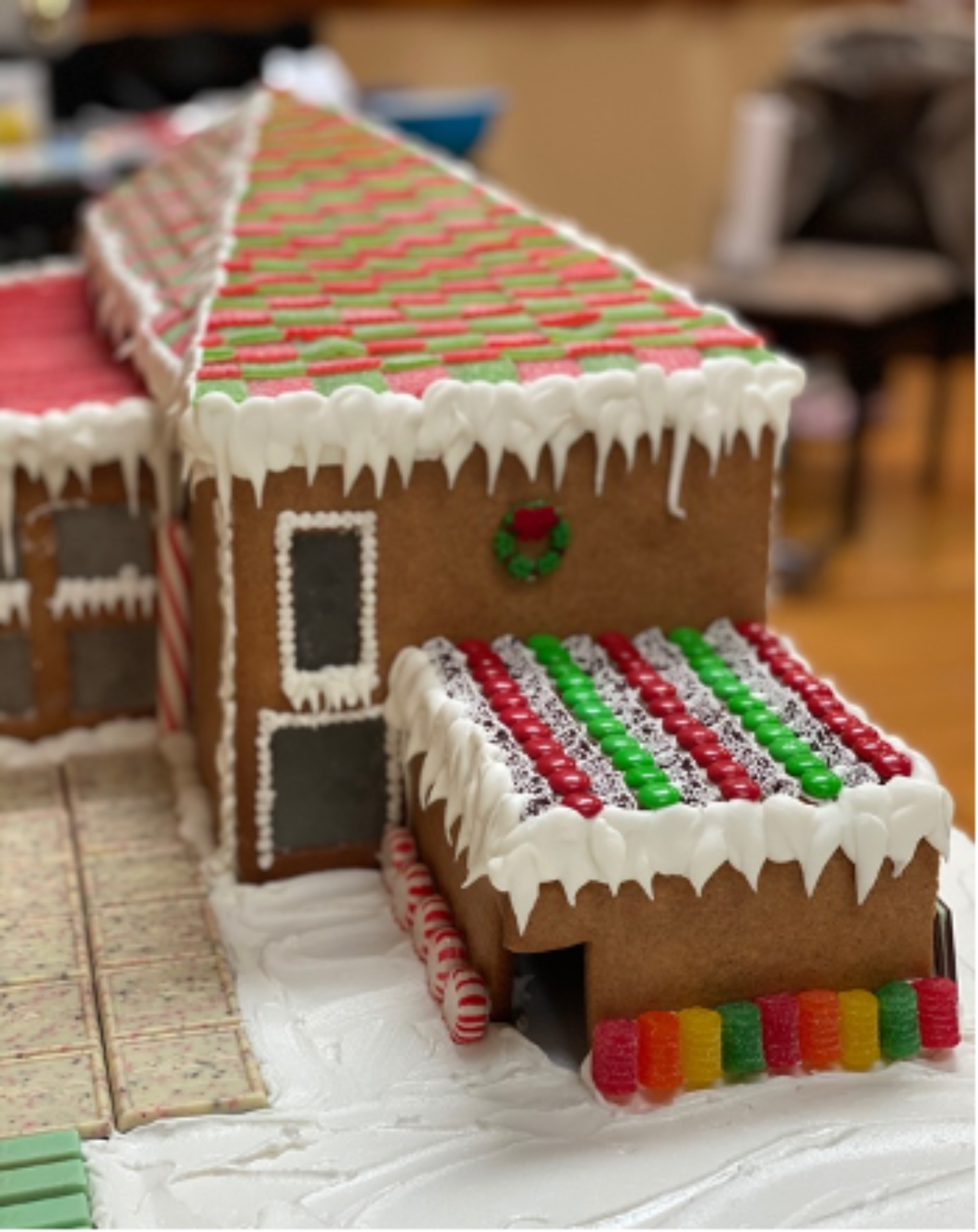 Below are some photos of the final product. You can see the gingerbread Aldrich for yourself on display in the Lounsbury House’s massive windows through December 20, and then at The Aldrich beginning December 21 through the holiday season. If you’d like to create your own custom gingerbread house, recipes for the dough and royal icing are downloadable below. We would love to see your designs! Post your most creative gingerbread buildings on social media and tag The Aldrich (@thealdrich)!