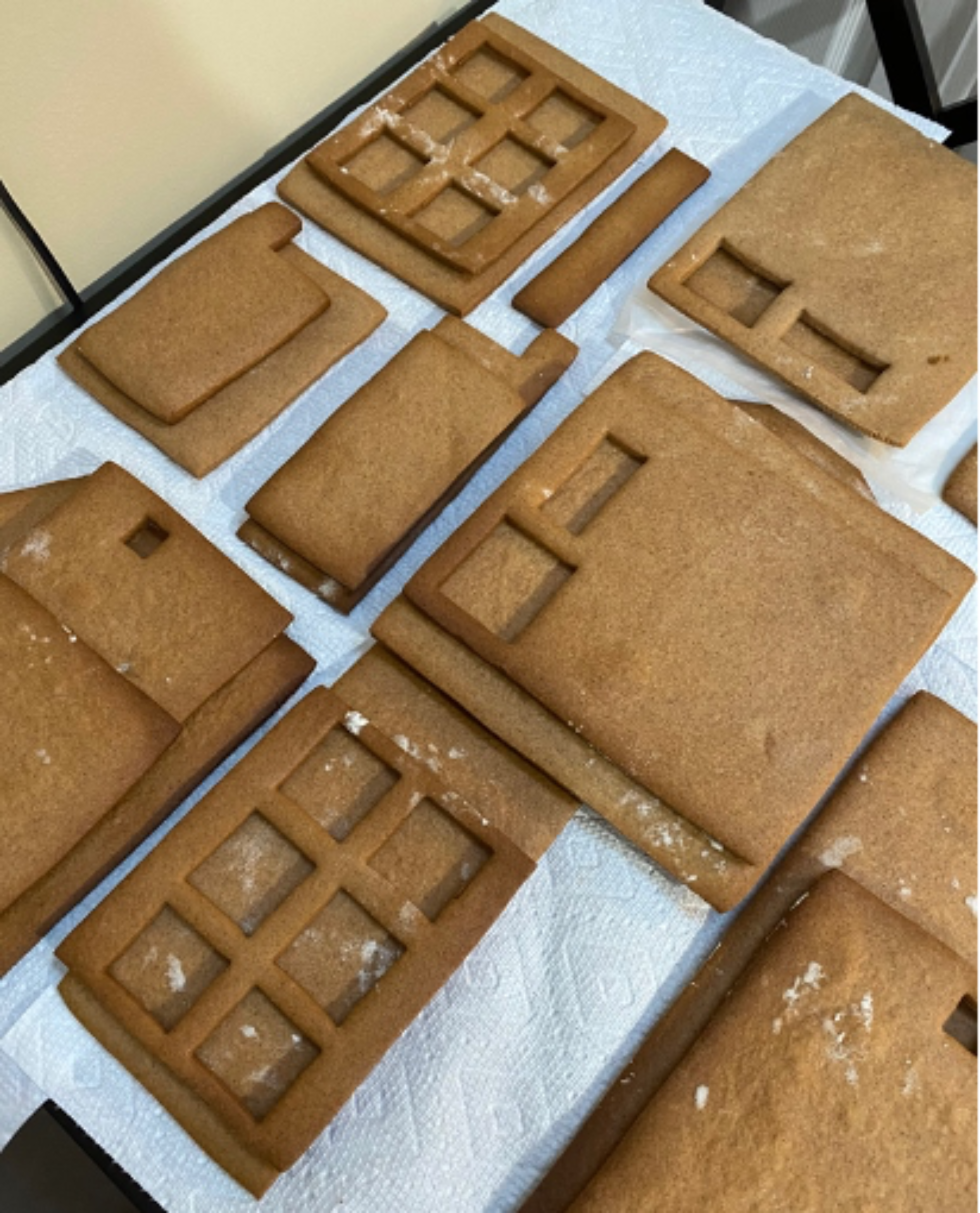 After the countless hours of constructing custom gingerbread houses (shout out to Sweet Lisa’s!), the surprising first step was to find and test a gingerbread recipe. Luckily, the first recipe I tried was exactly what I needed—plenty of corn syrup made for extra sturdy gingerbread “walls,” which was great for structural integrity and support, but I would highly recommend not trying to eat it. The royal icing “cement” is very simple to make, the hardest part is finding meringue powder at the grocery store (Stop & Shop occasionally carries it, but Amazon and Michaels are your fail-safes).