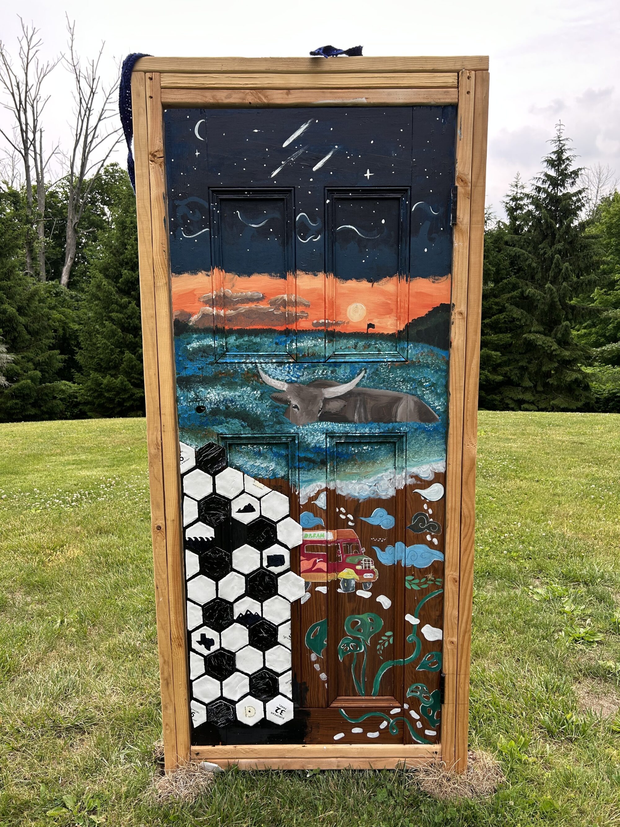 The Fellows’ answers varied depending on how they view and interact with the world. Their ideas ranged from themes of family to discovering their own identity. Together, they realized that home could be a physical space with four walls or it could be intangible, found in connections people share with one another. Every home has a door to welcome its visitors, and this one acts as a gateway engraved with the Fellows’ memories and dreams.