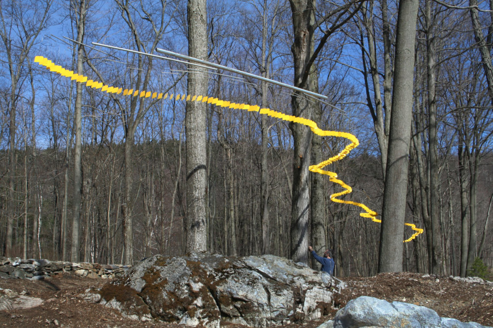 A I was invited by The Aldrich to participate in a group show in 1995 and expressed my gratitude by filling one of the galleries with a blizzard of yellow turkey feathers. I am thrilled that the Museum thinks well enough of my current work to invite me back.