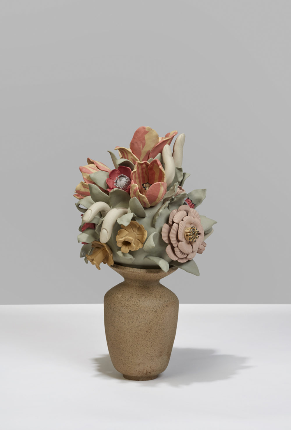 Top image: Genesis Belanger, Abundantly Empty the Ceaseless Void, 2020, Plywood, wool fabric, stoneware, porcelain, 58 x 60 x 16½, Courtesy of the artist and Perrotin