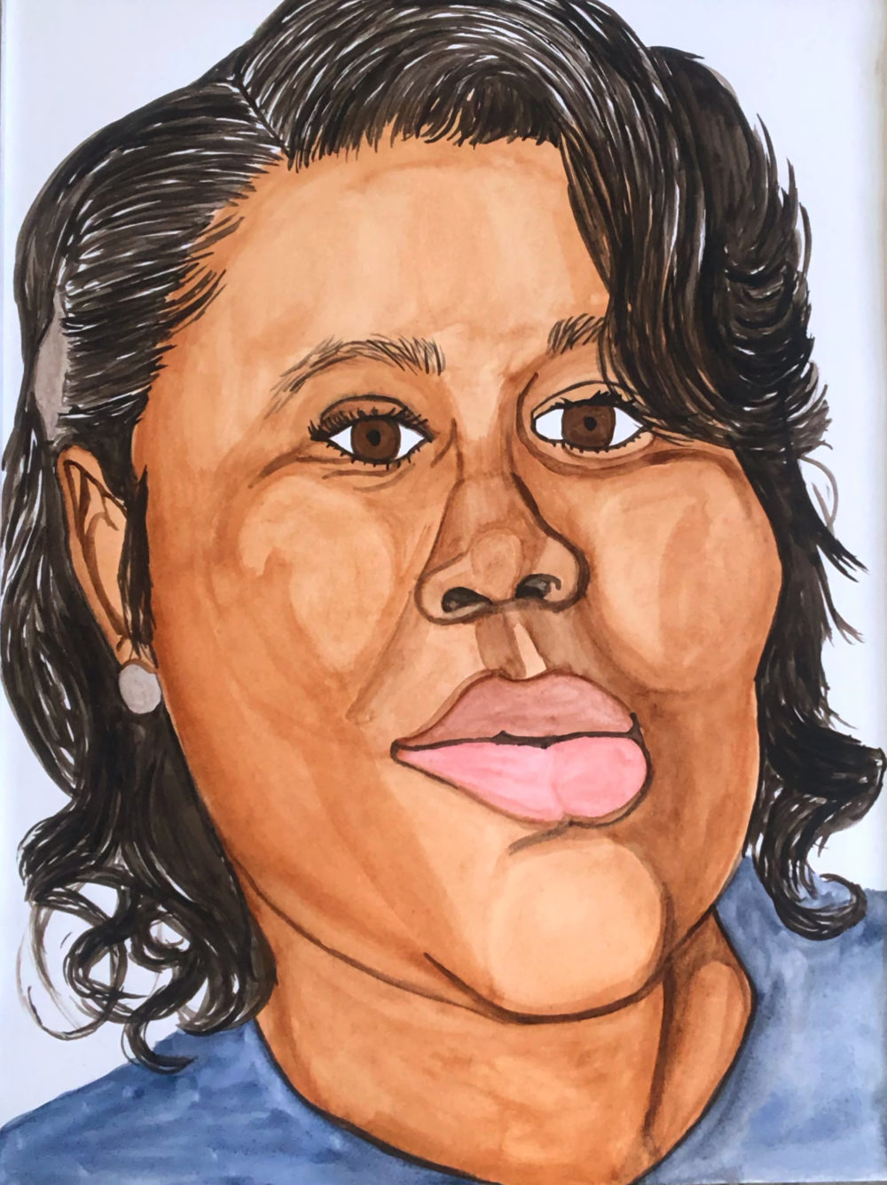 The paintings are part of Shepherd’s portrait series, featuring 9-inch by 12-inch watercolors he creates soon after hearing about incidents in the media.