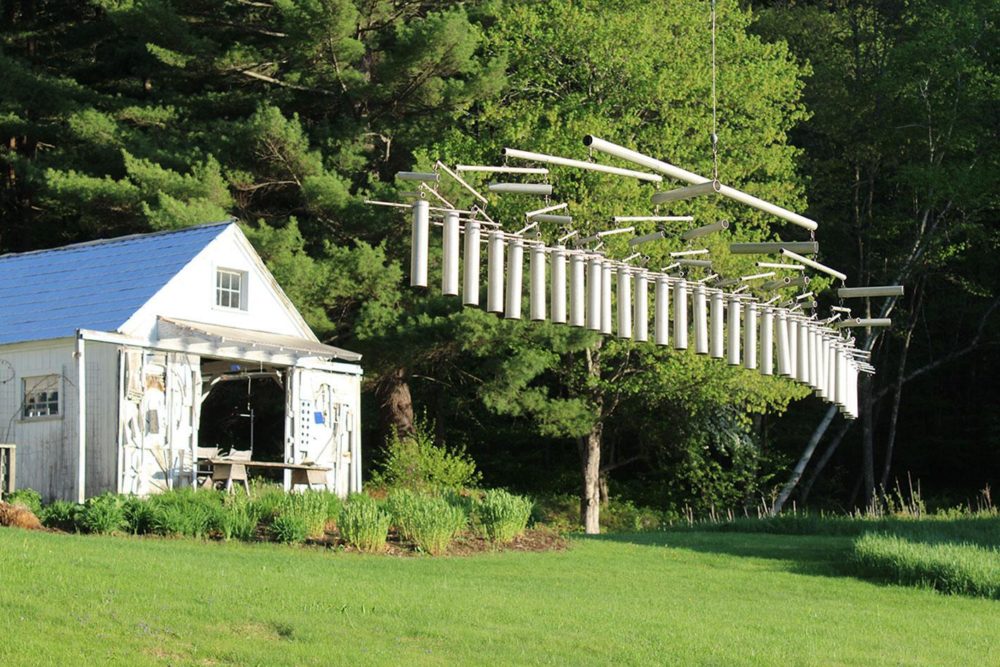 ‘I’m pretty isolated, which is an advantage in the present situation. I commute across the lawn, so I’ve been working at home for the last 45 years,’ he explains over the phone from his studio, a former farm founded in 1790 by an ‘ice man’, who sold his frozen wares to neighbouring farmers. His workshop is in the former ‘ice house’ and he uses an adjacent hay barn for exhibiting works, but the artist’s main gallery is outdoors. ‘The place is dripping with all kinds of kinetic sculptures, hanging from the trees and in the meadows.’